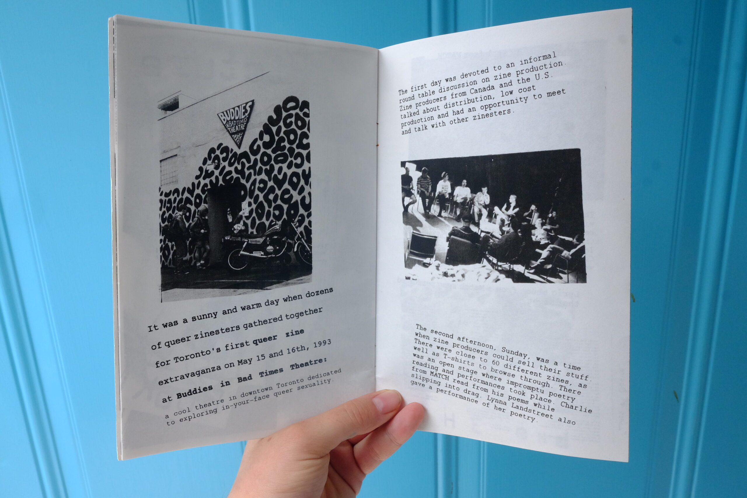Issue #2 of the zine BLOT is held in QZAP’s archive, but not digitized. The zine documents two queer events that took place in Toronto in 1993. I grew up in rural Ontario, about 5 hours away from Toronto, and was 6 years old in 1993. The place I grew up in was pretty bad for weird little fruity kids, and it is bittersweet to read about events that were happening in my lifetime and in a place not too terribly far away, but that were nevertheless worlds apart from my own experience.